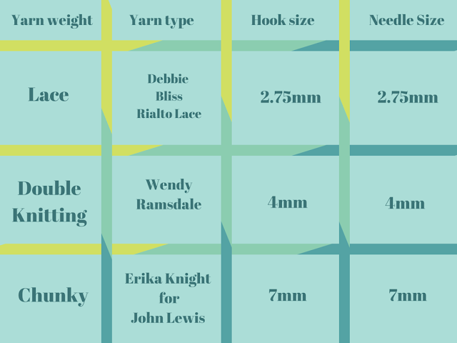 1 - The overall weight of each of the squares was used which means that the weight of the cast on/cast off and crochet chain are also included. If I was going to do this experiment again I would deduct the weight of the initial crochet chains, cast on and cast off so that on the actual stitches were being weighed.